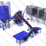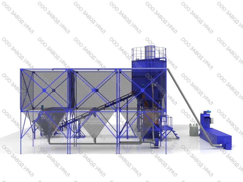 5. После этого добавляем песок, кварцевый фракции до 1 мм, допускаются вкрапления камней до 3 мм, но не более 3% от общего количества песка, желательно чтобы песок был теплый: 20-30 град. Цельсия. Для хранения песка используется «Бункер сыпучих материалов 4 м3», куда песок засыпают погрузочной техникой. Песок из бункера попадает на «Ленточный транспортер ТРЛ-4000», который транспортирует песок в «Вибросито ВС-03», (задача данной установки очистить песок от мусора и от крупной фракции инертных материалов). Под «Виброситом ВС-03» установлен«Ленточный транспортер ТРЛ-9000», который транспортирует чистый песок в «Дозатор сухих компонентов ДЗК-400», в нем происходит дозация и выгрузка в камеру смесителя «УНИВЕРСАЛ-1000».
